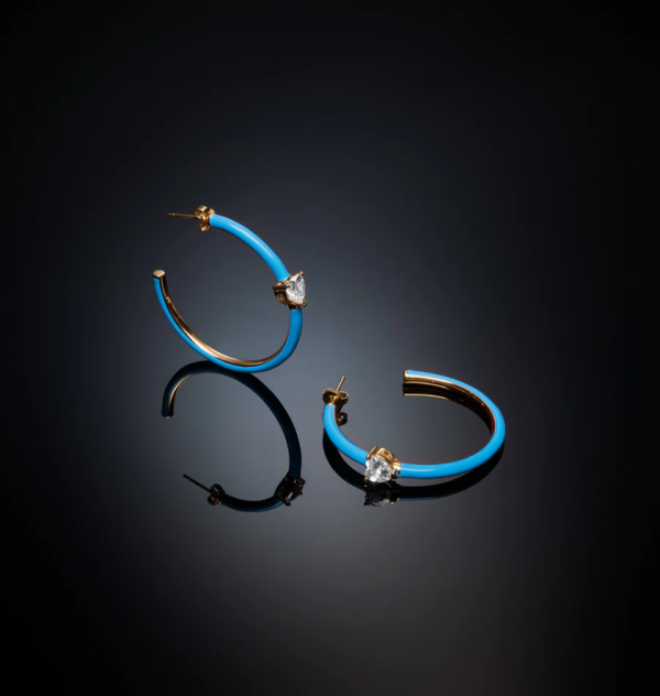 40mm enamel earrings with white heart-shaped zirconia plated in 18K gold