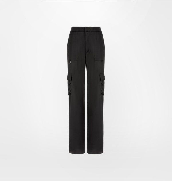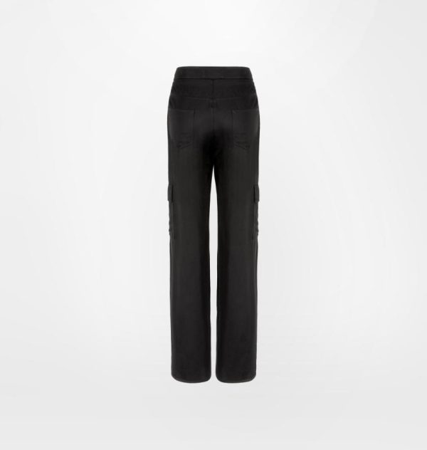 Black viscose satin cargo trousers.